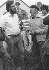 Im Rahmen eines Gedenkmarschs, der an die Todesmärsche von KZ-Häftlingen im April 1945 erinnerte, spricht Julius Brumsack 1985 vor dem jüdischen Friedhof darüber, was er nach seiner Rückkehr nach Beverstedt erlebte.